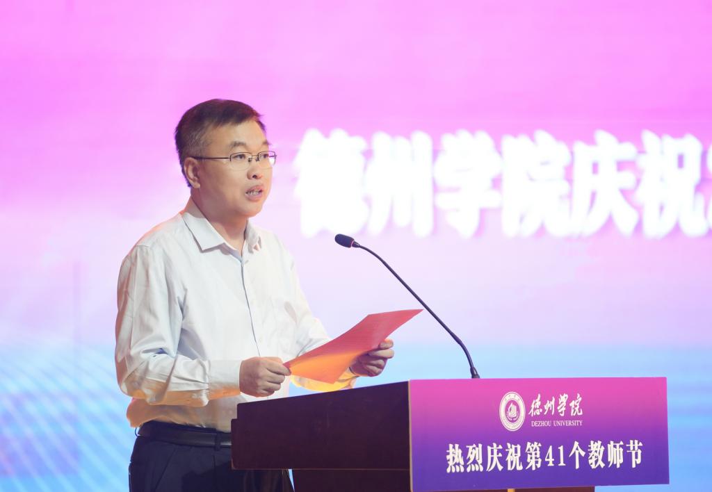 吴君讲话,他指出,全体教师坚守立德树人初心,甘于奉献,潜心治学,锐意创新,培养了一大批服务国家战略和区域发展的优秀人才,有力推动了学校各项事业迈上新台阶,赢得了社会各界的广泛赞誉。学校在应用型人才培养、师资队伍建设、服务发展能力等方面均实现了新跃升。他向全校教师提出三点希望:一是坚定理想信念,陶冶道德情操,做“为学为人”的引路者。二是涵养育人智慧,秉持躬耕态度,做“笃学笃行”的践行者。三是勤修仁爱之心,胸怀弘道追求,做“爱生护生”的温暖者。号召全体教师以教育家精神为引领,以更加饱满的热情、更加昂扬的斗志、更加务实的作风,踔厉奋发,笃行不怠,共同谱写BB电子游戏官网高质量发展的新篇章,为加快建设教育强国、强省贡献智慧和力量。